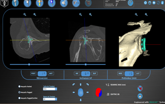 Une procédure d’évaluation préopératoire 3D afin faciliter le positionnement chirurgical des implants peut être nécéssaire, particulièrement dans les destructions osseuses importantes. Cette technique peut permettre d’obtenir des guides sur mesure de pose de prothèse personnalisée ou PSI.