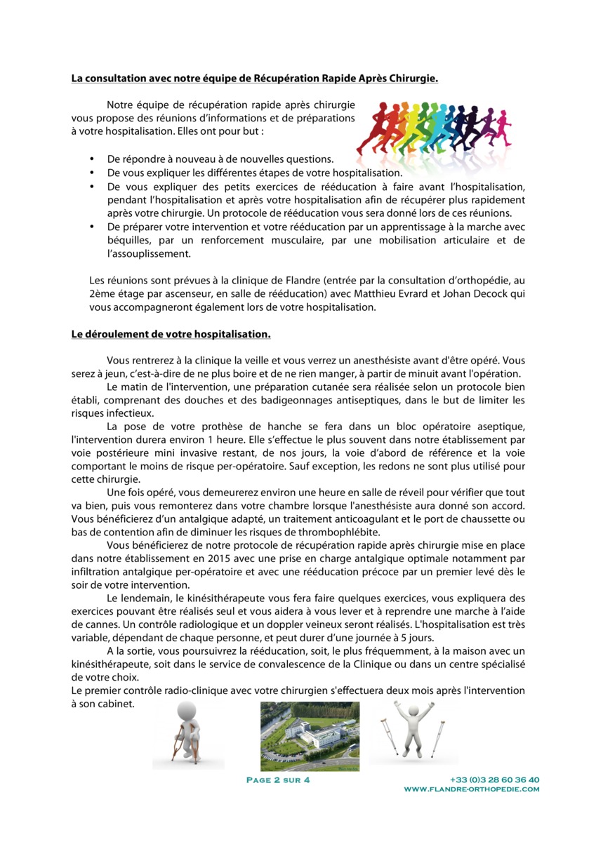 Les réunions sont prévues à la clinique de Flandre (entrée par la consultation d’orthopédie, au 2ème étage par ascenseur, en salle de rééducation) avec Matthieu Evrard et Johan Decock qui vous accompagneront également lors de votre hospitalisation.