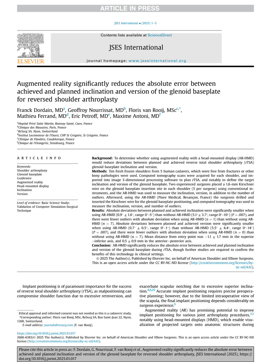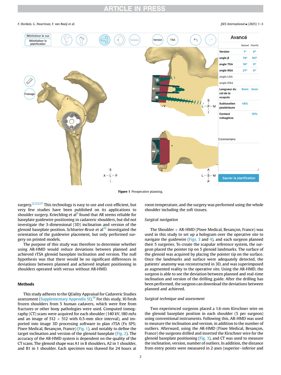 Publication de l'équipe Flandre Orthopédie sur l'innovation technologique pour la chirurgie prothétique de l'épaule Hier